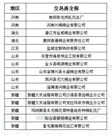 2011年度臨時(shí)收儲(chǔ)第四十四批已審核交易商來自全國(guó)5個(gè)主產(chǎn)區(qū),共計(jì)15家。詳細(xì)名單如下:
