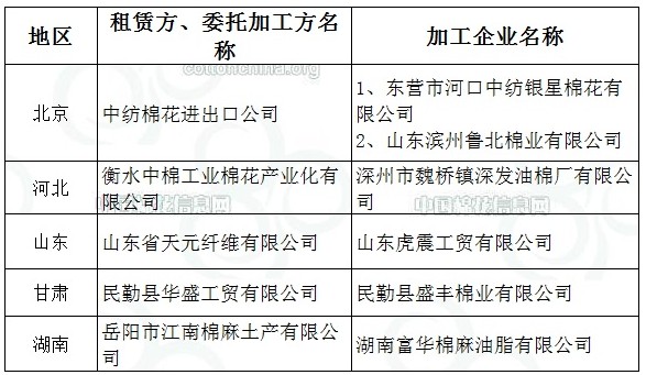 2011年度臨時收儲第五十三批已審核租賃、委托加工交易商來自全國4個主產(chǎn)區(qū)。詳細名單如下: