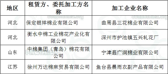 2011年度臨時收儲第五十四批已審核租賃、委托加工交易商來自全國3個主產(chǎn)區(qū)。詳細名單如下: