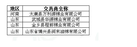 2011年度臨時(shí)收儲(chǔ)第六十一批已審核交易商來(lái)自全國(guó)2個(gè)主產(chǎn)區(qū),共計(jì)4家。詳細(xì)名單如下:
