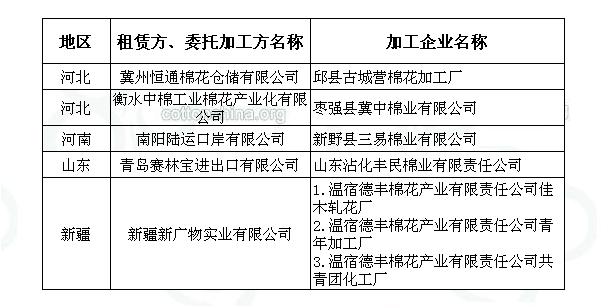 2011年度臨時收儲第五十六批已審核租賃、委托加工交易商來自全國4個主產(chǎn)區(qū)。詳細(xì)名單如下: