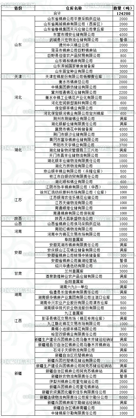 錦橋紡織網(wǎng)—資訊頻道> 棉花信息> 棉花動態(tài)>正文 12月26日收儲庫點(diǎn)及數(shù)量