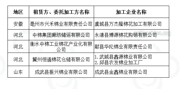 2011年度臨時收儲第六十四批已審核租賃、委托加工交易商來自全國3個主產(chǎn)區(qū)。詳細名單如下: