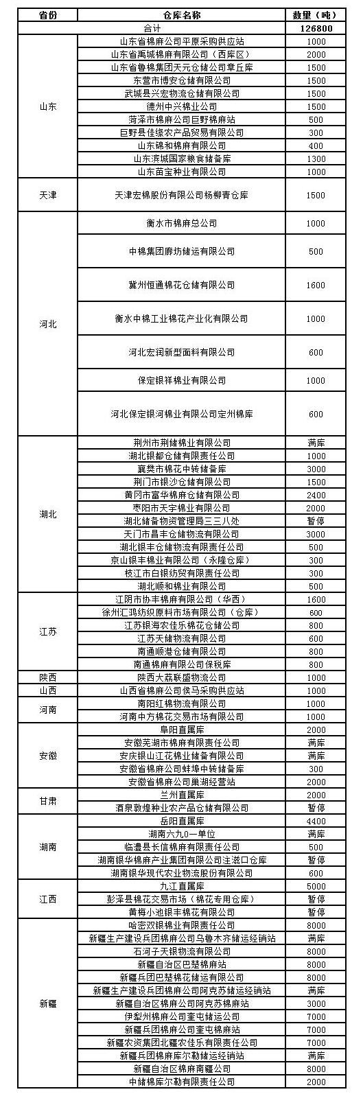 錦橋紡織網(wǎng)—資訊頻道> 棉花信息> 棉花動(dòng)態(tài)>正文 12月7日收儲(chǔ)庫(kù)點(diǎn)及數(shù)量