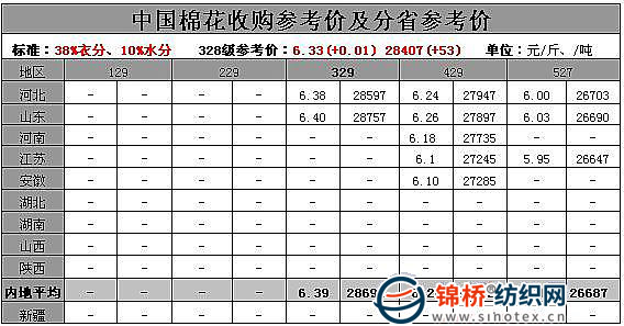 錦橋紡織網(wǎng)—資訊頻道> 棉花信息> 棉花動(dòng)態(tài)>正文 3月25日中國(guó)棉花收購(gòu)參考價(jià)