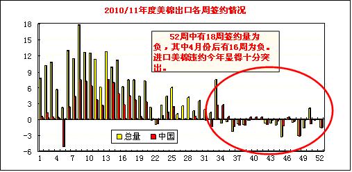 中國凈簽約本年度陸地棉負(fù)的15808噸,裝運(yùn)10297噸;簽約進(jìn)口下年度陸地棉25356噸。