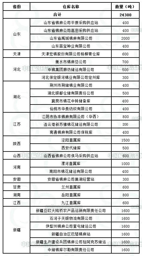 錦橋紡織網(wǎng)—資訊頻道> 棉花信息> 棉花動(dòng)態(tài)>正文 9月15日收儲庫點(diǎn)及數(shù)量