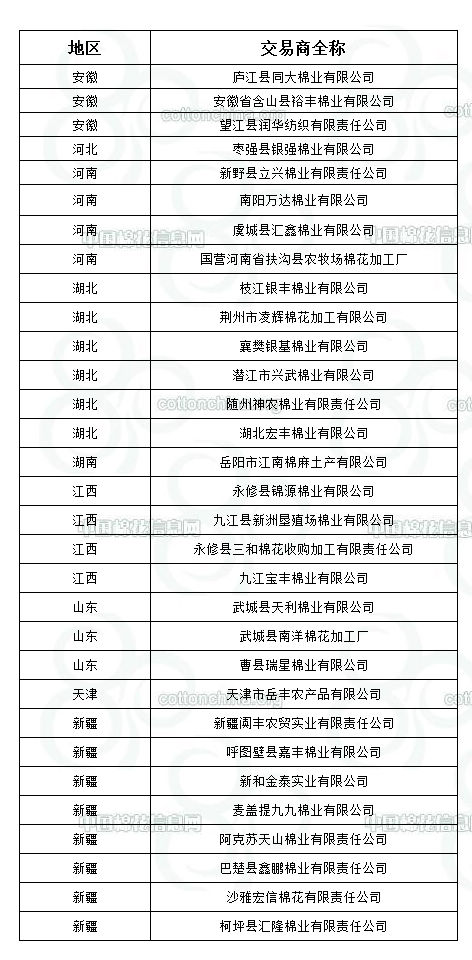 2011年度臨時收儲第八批已審核交易商來自全國9個主產(chǎn)區(qū),共計31家。