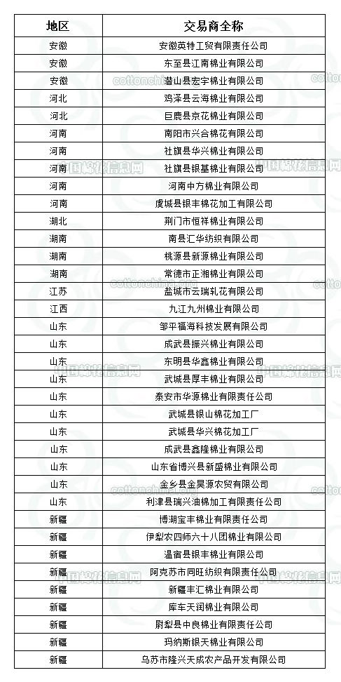 錦橋紡織網(wǎng)—資訊頻道> 棉花信息> 棉花動(dòng)態(tài)>正文 2011年度臨時(shí)收儲(chǔ)已審核交易商名單(第九批)