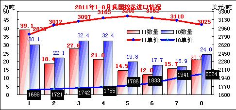 8月我國進口棉花數(shù)量增加,價格繼續(xù)回落