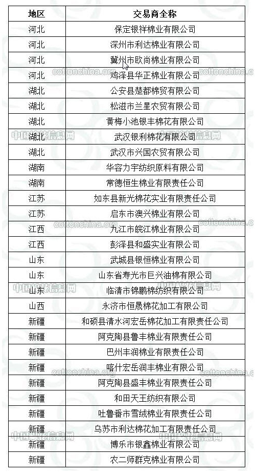2011年度臨時收儲第十二批已審核交易商來自全國8個主產(chǎn)區(qū),共計29家。