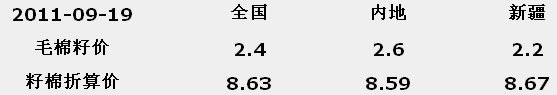 2011年度臨時(shí)收儲(chǔ)價(jià)折算籽棉參考價(jià)(2011年9月19日)