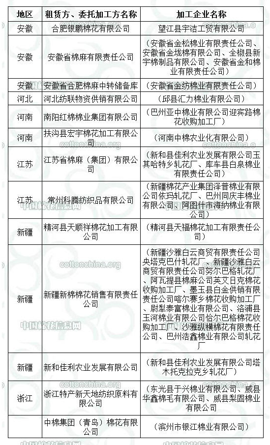 錦橋紡織網(wǎng)—資訊頻道> 棉花信息> 棉花動(dòng)態(tài)>正文 2011年度臨時(shí)收儲(chǔ)已審核租賃、委托加工交易商名單(第四批)