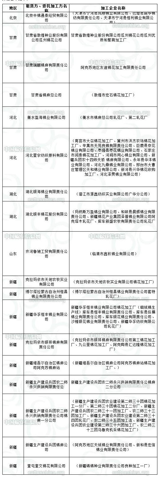 錦橋紡織網(wǎng)—資訊頻道> 棉花信息> 棉花動(dòng)態(tài)>正文 2011年度臨時(shí)收儲(chǔ)已審核租賃、委托加工交易商名單(第八批)