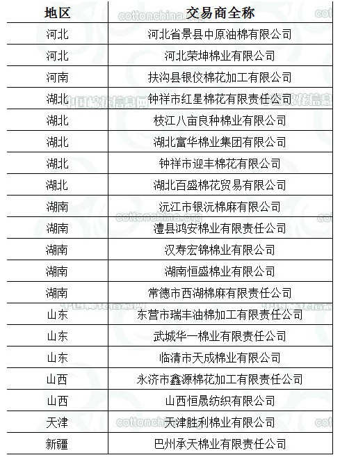 2011年度臨時收儲第二批已經(jīng)審核交易商來自全國8個主產(chǎn)區(qū),共計20家。