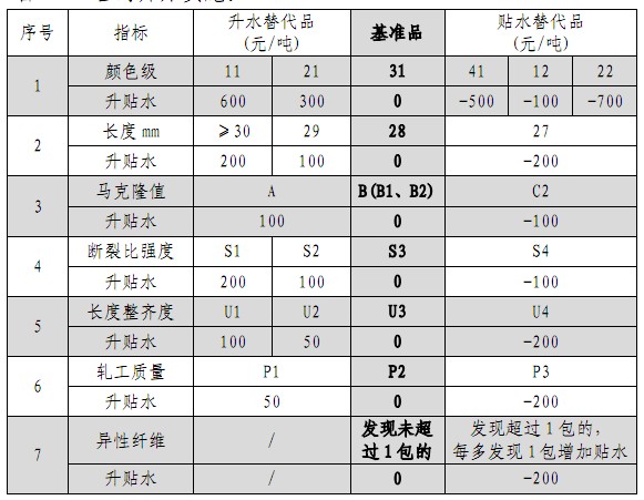 為適用2012年頒布的棉花新國(guó)家標(biāo)準(zhǔn),鄭商所對(duì)一號(hào)棉花期貨合約及交割細(xì)則、標(biāo)準(zhǔn)倉(cāng)單管理辦法相關(guān)條款進(jìn)行了修改,昨日公布了修改后的一號(hào)棉花期貨合約及相關(guān)業(yè)務(wù)細(xì)則,自CF311合約開(kāi)始施行。今日起,CF311合約掛盤(pán)交易。 據(jù)介紹,此次主要是對(duì)一號(hào)棉花期貨合約基準(zhǔn)交割品作了修改。根據(jù)修改后的細(xì)則,自CF311合約起,一號(hào)棉花期貨合約基準(zhǔn)交割品為:符合GB1103.1-2012《棉花第1部分:鋸齒加工細(xì)絨棉》規(guī)定的3128B級(jí),且長(zhǎng)度整齊度為U3檔,斷裂比強(qiáng)度為S3檔,軋工質(zhì)量為P2檔的國(guó)產(chǎn)棉花。符合GB1103.1-2012《棉花第1部分:鋸齒加工細(xì)絨棉》規(guī)定的,顏色級(jí)為11、21、41、12、22級(jí),平均長(zhǎng)度級(jí)為27mm、29mm及以上,長(zhǎng)度整齊度為U1、U2、U4檔,主體馬克隆值級(jí)為A級(jí)、C級(jí)C2檔,斷裂比強(qiáng)度為S1、S2、S4檔,軋工質(zhì)量為P1檔、P3檔的棉花,可以替代交割。一個(gè)交割單位棉花按照顏色級(jí)和軋工質(zhì)量比例實(shí)行分級(jí)計(jì)價(jià)。有主體顏色級(jí)的棉花,升水100元/噸。無(wú)主體顏色級(jí)的棉花,以其中占比例最大的顏色級(jí)為標(biāo)注顏色級(jí)。 據(jù)了解,棉花新國(guó)家標(biāo)準(zhǔn)分GB1103.1-2012《棉花第1部分:鋸齒加工細(xì)絨棉》和GB1103.2-2012《棉花第2部分:皮輥加工細(xì)絨棉》。其中,鋸齒加工細(xì)絨棉采用顏色分級(jí)指標(biāo)體系,皮輥加工細(xì)絨棉仍維持品級(jí)指標(biāo)體系。 一號(hào)棉花期貨合約替代交割品升貼水(見(jiàn)下圖):自CF311合約開(kāi)始實(shí)施。倉(cāng)單注銷出庫(kù)時(shí),在復(fù)議期內(nèi),棉花顏色及因自然變異造成棉花顏色級(jí)類型下降超出上述替代品范圍的,其生忒水參照中國(guó)棉花協(xié)會(huì)2012年11月21日發(fā)布的《棉花買賣合同及一般條款》(適用于國(guó)產(chǎn)棉貿(mào)易)中“鋸齒加工細(xì)絨棉質(zhì)量差價(jià)表”執(zhí)行。