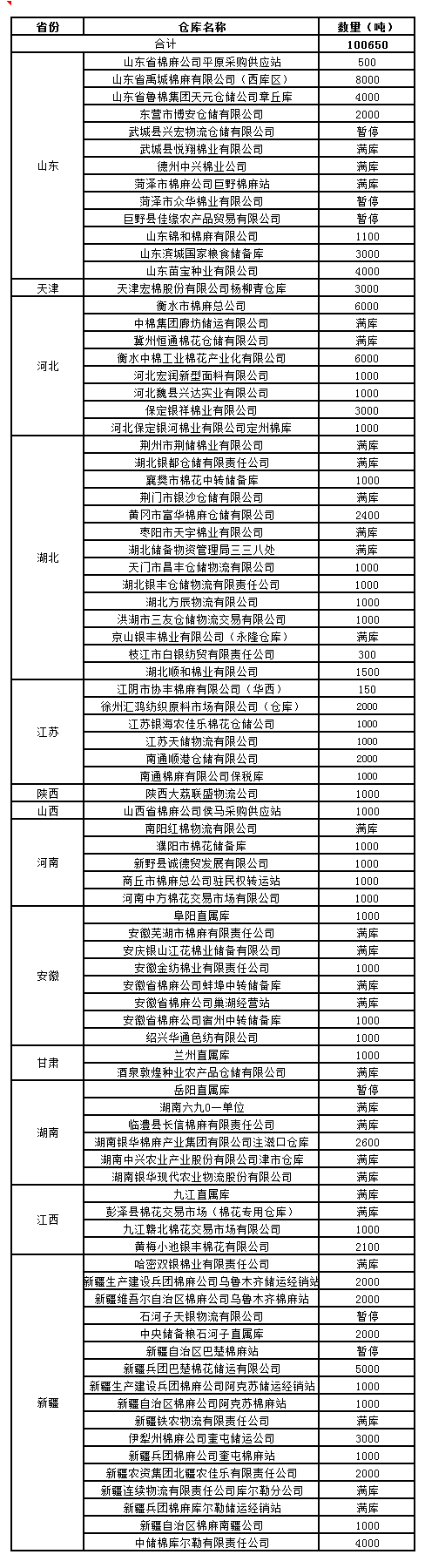錦橋紡織網(wǎng)—資訊頻道> 棉花信息> 棉花動態(tài)>正文 2月24日收儲庫點(diǎn)及數(shù)量