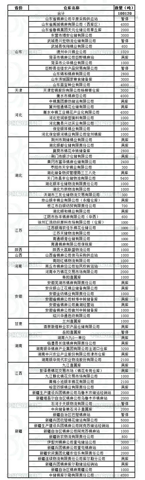 錦橋紡織網(wǎng)—資訊頻道> 棉花信息> 棉花動(dòng)態(tài)>正文 2月8日收儲(chǔ)庫(kù)點(diǎn)及數(shù)量