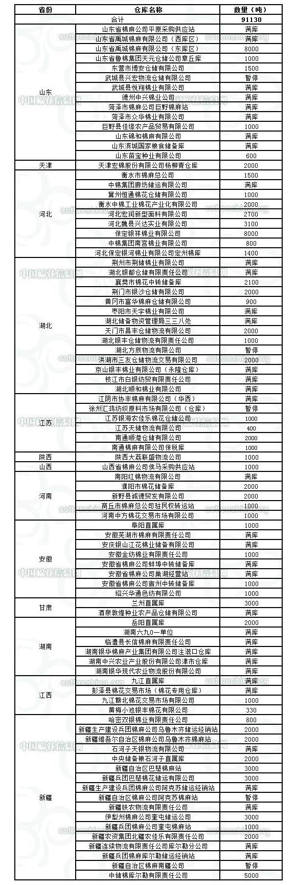 錦橋紡織網(wǎng)—資訊頻道> 棉花信息> 棉花動態(tài)>正文 3月13日收儲庫點及數(shù)量