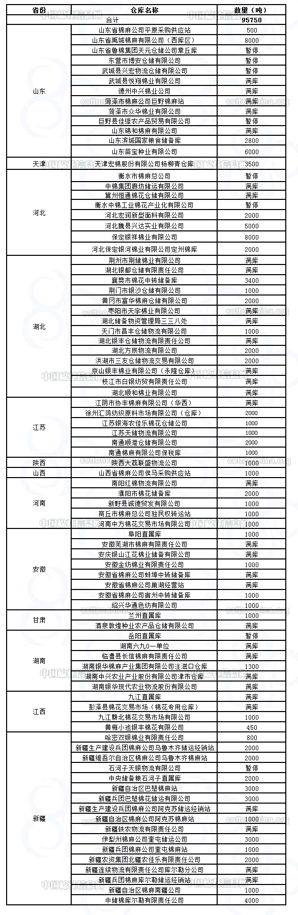 錦橋紡織網(wǎng)—資訊頻道> 棉花信息> 棉花動(dòng)態(tài)>正文 3月2日收儲(chǔ)庫點(diǎn)及數(shù)量