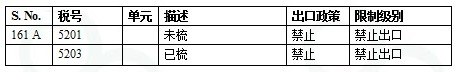 主題:棉花(關(guān)稅號5201和5203)出口禁令