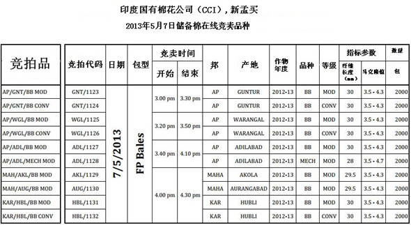 印度國(guó)有棉花公司(CCI)7日通過四場(chǎng)在線競(jìng)拍向其國(guó)內(nèi)市場(chǎng)競(jìng)賣2萬包(3400噸)儲(chǔ)備棉,時(shí)間為印度時(shí)間15:00-16:30(北京時(shí)間17:30-19:00)。其中安德拉邦占1.2萬包(2040噸),包括1700噸BunnyBrahma和340噸MECH,剩余來自馬哈拉施特拉邦和卡納塔克邦。