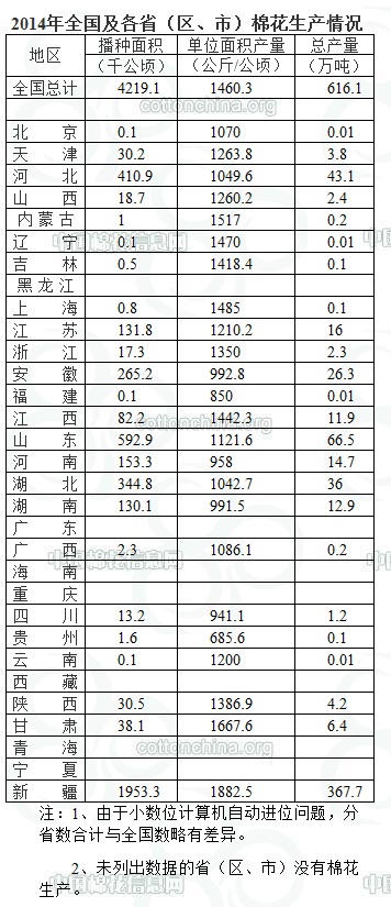 全國棉花總產(chǎn)量為31個省(區(qū)、市)棉花產(chǎn)量的總和。