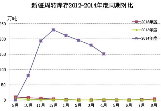 截至4月底,新疆區(qū)內(nèi)42家倉庫商品棉周(中)轉庫存為151.4萬噸,環(huán)比減少29.3萬噸,全部為新疆棉。