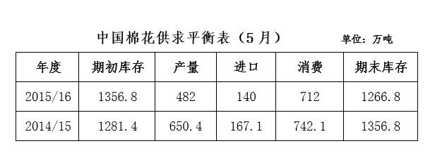 紡織生產(chǎn)保持平穩(wěn),紗、布產(chǎn)量小幅增加,用棉量恢復(fù),原料庫(kù)存增加,新疆棉使用比重減少,進(jìn)口棉使用比重增加。國(guó)內(nèi)棉紡織投資增速平穩(wěn),特別是新疆地區(qū)投資熱潮未退,加之企業(yè)加快轉(zhuǎn)型升級(jí),預(yù)計(jì)棉花總體需求逐步趨于穩(wěn)定。海關(guān)統(tǒng)計(jì),5月紡織品服裝出口金額累計(jì)235.16億美元,同比增加0.5%,增幅縮窄;1-5月我國(guó)紡織品服裝出口金額累計(jì)1003.28億美元,同比下降2.3%。