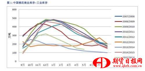 銀河期貨農(nóng)產(chǎn)品分析師劉倩楠認(rèn)為,商業(yè)棉庫(kù)存處于歷史地位,新疆市場(chǎng)用棉緊張,是棉花價(jià)格易漲難跌的重要原因。雖然從5月開(kāi)始國(guó)儲(chǔ)棉逐步流入市場(chǎng),下游企業(yè)對(duì)棉花商業(yè)庫(kù)存的消化量也隨著國(guó)儲(chǔ)棉的輪出而逐漸減少,但近100萬(wàn)噸的商品庫(kù)存在歷史上仍然屬于低位,這是導(dǎo)致近期棉價(jià)堅(jiān)挺上漲的基礎(chǔ)性因素。此外,隨著新疆紡織企業(yè)的大力發(fā)展,疆內(nèi)棉紗銷(xiāo)量可觀,新疆紡織企業(yè)對(duì)棉花的需求量較大,但由于大量的新疆棉運(yùn)到內(nèi)地以及疆內(nèi)儲(chǔ)備棉數(shù)量有限,導(dǎo)致新疆紡織企業(yè)用棉非常緊張,從而出現(xiàn)疆棉價(jià)格高于內(nèi)地棉價(jià)的異?,F(xiàn)象。