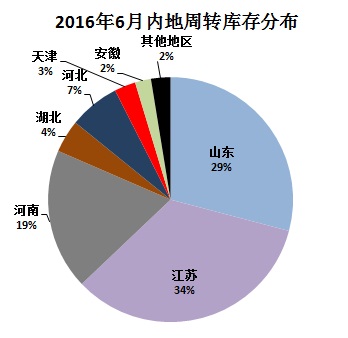 全國棉花周轉(zhuǎn)庫存月報(2016年6月)