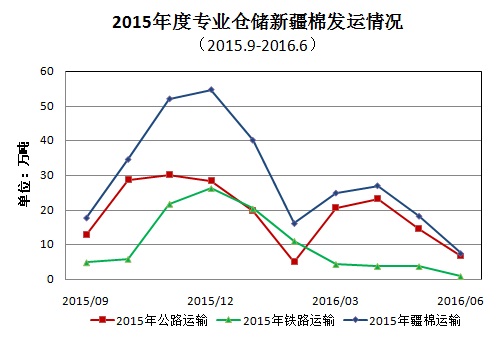 2015年度以來(2015年9月至2016年6月),新疆專業(yè)倉儲庫累計(jì)出疆發(fā)運(yùn)293.3萬噸,其中鐵路出疆發(fā)運(yùn)103.34萬噸,公路出疆189.96萬噸。
