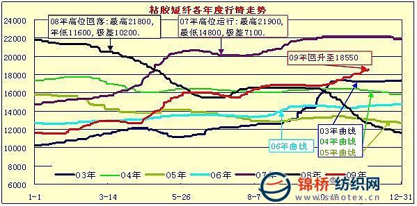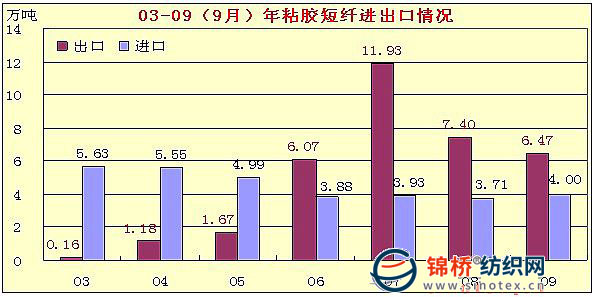 粘膠短纖在出口大幅增加、內(nèi)需供貨趨緊的情況下保持穩(wěn)健上升態(tài)勢,尤其是新棉上市后的短絨等棉副產(chǎn)品價飚漲(棉短絨上漲1倍達(dá)7800元/噸),在供需不足和成本因素影響下,11月粘膠短纖價再提升1個臺階,目前主體價升至18500元/噸,較9月末累計上漲1660元,其中11月漲1100元。從供需狀況和短絨高企情況分析,粘膠短纖的目標(biāo)有可能再次攻破20000元關(guān)口。 從粘膠行業(yè)04-08年變化情況看,生產(chǎn)增長36.5%,粘膠短纖出口增長5.3倍,粘膠短纖出口由04年的1.18萬噸增至07年的11.93萬噸,08年的7.41萬噸,出口占生產(chǎn)量比重由04年的1.2%增至07年的7.7%,08年的5.6%。出口大幅增長,進(jìn)口逐年下降(由04年的5.55萬噸下降至08年的3.71萬噸,降幅達(dá)33%),內(nèi)需貸源超緊,導(dǎo)致粘短價格持續(xù)穩(wěn)步年升。其中06年平穩(wěn)在14000元以上,07年最高時達(dá)22200元,08年受金融危機影響出口比重下降,價格回落至近幾年的低谷11600元。09年再度穩(wěn)健上攻,目前以升至18500元以上,較年初漲7000元左右,漲幅達(dá)60%。