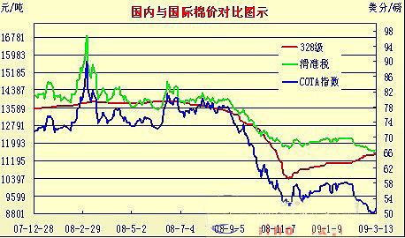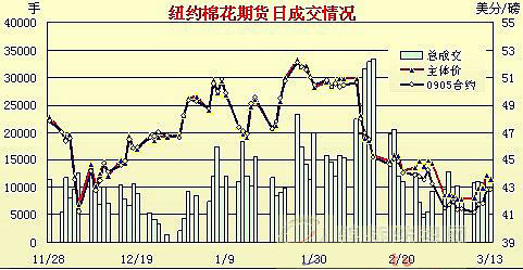 與之相反,2月份國(guó)際棉價(jià)下滑以來(lái),3月份持續(xù)維持低位運(yùn)行。紐約棉花期貨主體合約價(jià)3月份以來(lái)一直在41-42美分/磅之間運(yùn)行,交投十分清淡。全球棉價(jià)A指數(shù)3月份平均均在50-52美分/磅之間震蕩,按1%關(guān)稅折人民幣主港提貨價(jià)約8800-9000元/噸左右,低于國(guó)內(nèi)現(xiàn)貨2500元左右。受進(jìn)口棉價(jià)差影響,近期棉花進(jìn)口數(shù)量增加,據(jù)海關(guān)統(tǒng)計(jì),2月份進(jìn)口棉花9.3萬(wàn)噸,比1月份增加1.5萬(wàn)噸。前2個(gè)月進(jìn)口美棉簽約量達(dá)21.48萬(wàn)噸,比2008年末11-12兩月簽約總量的3.3倍,占美棉出口簽約總量比重由2008年末的23.6%上升至37%。