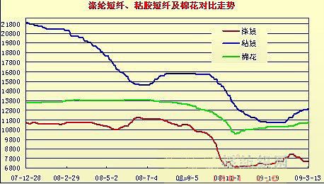 5.行業(yè)引導(dǎo),粘膠短纖止跌反彈。面臨行業(yè)全面虧損局面,粘膠專業(yè)委員會(huì)在北京召開(kāi)粘膠會(huì)議。會(huì)議達(dá)成共識(shí),為維護(hù)行業(yè)生存和發(fā)展,力爭(zhēng)2009年全面扭轉(zhuǎn)行業(yè)虧損局面,要求短纖生產(chǎn)企業(yè)減產(chǎn)保價(jià),長(zhǎng)絲至6月份前上調(diào)4000元左右,并從即日起長(zhǎng)絲價(jià)格上調(diào)1000元。外銷價(jià)格進(jìn)行相應(yīng)調(diào)整。在行業(yè)規(guī)定指導(dǎo)下,1個(gè)多月來(lái)粘膠短纖主體價(jià)由11500元/噸上漲至目前的12900元/噸,上漲1400元左右,漲幅12.2%。 6.油價(jià)低位徘徊,滌綸短纖上沖回落。受金融危機(jī)和原油消費(fèi)下降影響,國(guó)際原油價(jià)格大幅下滑后持續(xù)低位徘徊,紐約原油期貨價(jià)格3月份以來(lái)基本在42-45美元/桶。受原油價(jià)格低位和下游滌綸短纖需求不振影響,滌綸短纖又回落至7500元/噸左右。滌綸短纖自2008年10月份跌破萬(wàn)元以來(lái),一直就在低位徘徊。