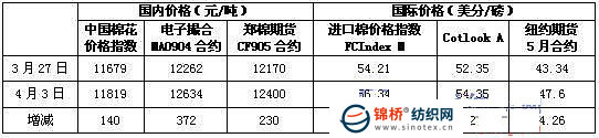 上周(3月30日-4月3日),第三批收儲進入最后階段,累計有效成交已達到150萬噸。由于新棉收購加工已接近尾聲,符合國家收儲要求的棉花不足,部分企業(yè)競拍后不能按時交儲,實際收儲計劃尚未完成。上周共投放計劃8.12萬噸,實際有效成交6.19萬噸,無效成交1.93萬噸。隨著各地收購加工陸續(xù)結(jié)束,參與交儲企業(yè)繼續(xù)減少,上周后期已不足350家,不到高峰時期的一半,競拍成功率也下降到10%左右。截至4月3日,第三批收儲已累計有效成交1507050噸,扣除申請中止的合同,2008年度實際收儲累計2689850萬噸,已完成計劃收儲量272萬噸的98.89%。其中新疆棉1495200噸,內(nèi)地棉1194650噸。 本年度以來,受紡織品市場疲軟及棉花價格下跌影響,紡織企業(yè)棉花庫存較低,由于收儲影響,市場上中高等級資源明顯減少,部分棉商開始惜售,而紡織企業(yè)為采購到合適的資源而提高了報價,上周國內(nèi)棉花現(xiàn)貨價格上漲速度加快。4月3日,中國棉花價格指數(shù)(CC Index328)為11819元/噸,較前一周上漲140元/噸,漲幅較前一周增加了近百元。電子撮合和期貨市場在國內(nèi)現(xiàn)貨價格和國際市場的帶動下也繼續(xù)上漲,近期合約分別上漲372元/噸和230元/噸。目前大部分地區(qū)收購已基本結(jié)束,收購主要集中在河北、河南、山東和安徽等省。受皮棉銷售價格上漲影響,籽棉收購價格也繼續(xù)走高。周末,標準級籽棉收購均價為2.71元/斤,較前一周上漲0.06元/斤。 3月31日,美國農(nóng)業(yè)部(USDA)發(fā)布了2009年主要農(nóng)作物種植意向調(diào)查結(jié)果,其中陸地棉881萬英畝(5347.67萬畝),較去年下降7%,是1983年以來最低水平;皮馬棉14.35萬英畝(87萬畝),較去年下降18%。盡管美棉面積減幅低于市場普遍預期,但是大豆面積增幅卻大幅低于市場預期,農(nóng)產(chǎn)品期貨市場因而普遍走強。在此帶動下,國際棉花價格也出現(xiàn)大幅上漲。周末,紐約棉花期貨近期合約價格收于47.6美分/磅,較前一周上漲4.26美分/磅,周漲幅接近10%。國際現(xiàn)貨價格也出現(xiàn)較大幅度上漲,4月3日,中國進口棉價格指數(shù)FC Index M指數(shù)為56.34美分/磅,折1%關(guān)稅9885元/噸,低于國內(nèi)1934元,折滑準稅12071元/噸,高于國內(nèi)252元/噸。