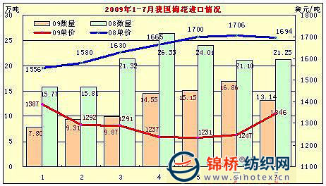 今年來,棉花政策始終貫穿市場,前期收儲止跌提升棉價,后期放儲調整市場供應,未發(fā)放滑準稅棉花進口配額,棉花進口繼續(xù)大減,棉花進口量在08年全年下降14.2%的情況下,09年前7個月同比大降40.5%,降幅大幅擴大。而棉紗線進口在08年全年下降14.3%的情況下,09年前7個月同比增長14.32%,進口由降轉增,且逐月上升。主要化纖原料中,粘膠短纖7月份出口增速擴大,滌短出口環(huán)比增長。