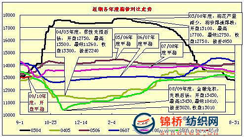一是從成本及產品市場價格變動情況看,13000元/噸棉價已經(jīng)達紡織企業(yè)成本極限,紡織企業(yè)基本是無利可圖甚至成本倒掛,續(xù)漲有壓力。如目前40支普梳純棉紗市場銷售價約在19300-20500元/噸左右,對棉價最大承受能力約在12200-13200元/噸。反之按13000元/噸棉價計算40支普梳純棉紗最低銷售價應該在19500-20000元/噸,若按財務口徑計算,含稅最低銷售價應該在22500元左右,因為水電汽、工費、其他費用上漲幅度較大。因此目前13000元/噸棉價基本是紡織企業(yè)成本承受極限,棉價繼續(xù)上漲,無疑是成本倒掛。從部分紡織行業(yè)上市公司上半年中期報告看,上半年,大部分上市公司主營業(yè)務利潤大幅下降或虧損,即便盈利,大多為營業(yè)外收入。分析原因主要集中在金融危機影響、國際市場萎縮、競爭加劇、原料及能源價格上漲等。 二是國際棉價低位運行和棉紗進口增加的競爭壓力。2009年來國際棉價基本在60美分/磅上下運行,與國內棉價差距加大至1800-2000元/噸左右,加上棉花進口量限制(2009年除下發(fā)89萬噸配額內配額和近期下發(fā)40萬噸進料加工配額外,基本再沒下發(fā)進口配額),國內外棉價難以接軌,原料成本處于競爭劣勢。在國際棉價低位運行期間,我國周邊國家加大進口力度,進口數(shù)量大幅增加。從美棉出口簽約量看,2008年度美棉出口簽約總量235.26萬噸,同比上年度下降8.5%。其中巴基斯坦12.8萬噸,增長2.15倍;越南13.54萬噸,增長76.9%;臺灣6.16萬噸,增長88.6%;印度3.18萬噸,增長22倍。我國本年度簽約66.06萬噸,同比上年度下降30.1%。上述周邊國家和地區(qū)原料成本優(yōu)勢,導致大部分棉紗輸入我國內地,既擠占我國國內市場,又搶占我國國際市場。紡織企業(yè)為擴大國內市場份額,不得不采取降價措施擴大銷售,從而削弱棉價消化能力。 三是下跌空間有限。上一年度由于生產資料漲價,棉價下滑,棉農增產不增收,嚴重挫傷棉農植棉積極性,2009年棉花播種面積明顯下降(約降11.3%)。棉農期望2009年新棉能夠有個好收益,期望值都在3元/斤以上。從近期籽棉收購情況看,接近棉農期望價,3級籽棉平均在2.9元/斤左右,折皮棉約12500元/噸。按此收購成本計算,13000元/噸銷銷價還是比較合理,但是繼續(xù)下跌空間不大。 四是從周期性看,棉花市場一般以五年左右為一過周期,即在一個周期內不是因為紡織品市場的變化,就是因為棉花收成的變化而造成棉花市場較大幅度波動。從“近幾個年度棉花走勢”附圖看,03/04棉花年度,因棉花生產面積下降和災害造成大幅減產,資源供應嚴重不足,供需矛盾導致棉價爆漲爆跌,最高與最低極差近5000元左右。當年,國內調控缺乏資源的情況下,之后增加棉花進口才平穩(wěn)了市場,04年全年進口190.04萬噸,比03年增長118%,05年進口256.91萬噸,增長35.2%。08/09棉花年度,受金融危機影響,國際紡織品市場萎縮,棉價直線下滑,最低時時達10000元左右,創(chuàng)近年來的新低,如前所述,在國儲棉的收儲和拋儲調控下回穩(wěn)。按照周期概念,09/10棉花年度,棉花市場應是平穩(wěn)運行年度。 五是滌綸短纖也將隨之平穩(wěn)運行。多年來,滌綸短纖與棉價走勢相關度較高,如在03/04年度棉價大幅波動時,滌綸短纖變動也較為劇烈,曾兩度出現(xiàn)峰谷,其中03年10月份由每噸9600元直線攀升至12050元,漲幅2450元,11月份直線下挫至9000元,之后又逐步回穩(wěn),至04年在10400-11700元波動運行。08年,受金融危機影響,9月份滌短一路下滑,由每噸12000元滑至7150元。09年,隨著棉花收、拋儲促使棉價穩(wěn)中回升,滌短也小步上漲,但價格水平為歷年最低,基本在9000元上下波動。按“金九銀十”季節(jié)性規(guī)律,今年9月份滌短未明顯變化,預計受庫存增加和下游紗類市場未見啟動,尤其近期棉價變動不會太大,預計10月份滌短仍以平穩(wěn)運行為主。 綜上情況,預計短期內國內棉價可能維持平穩(wěn)運行、穩(wěn)中微漲格局,下跌空間有限。但是中長期棉價走勢尚難預料,因為政策調控將在一段時期內左右市場走向。 附近幾年度棉價走勢對比圖: 附滌綸短纖各年度走勢圖: 【錦橋紡織網(wǎng)信息咨詢部】 |