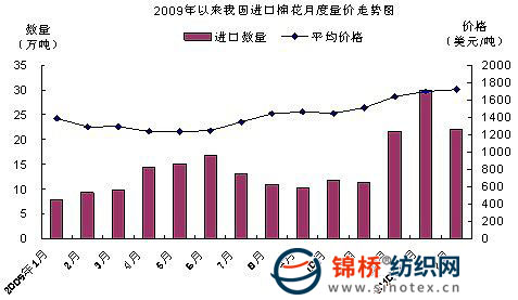 (二)兩區(qū)一庫倉儲方式進(jìn)口激增,一般貿(mào)易和加工貿(mào)易進(jìn)口倍增。2010年1-2月我國以兩區(qū)一庫倉儲方式進(jìn)口棉花22.6萬噸,增長3.1倍,占同期我國棉花進(jìn)口總量的43.4%。以一般貿(mào)易方式進(jìn)口18.8萬噸,增長1.7倍,占36.1%。以加工貿(mào)易方式進(jìn)口10.7萬噸,增長1.3倍,占20.5%。 (三)私營企業(yè)成為進(jìn)口領(lǐng)頭羊。2010年1-2月我國私營企業(yè)進(jìn)口棉花18萬噸,激增3.7倍,占同期我國棉花進(jìn)口總量的34.6%。國有企業(yè)進(jìn)口17.1萬噸,增長1.3倍,占32.9%。外商投資企業(yè)進(jìn)口10.2萬噸,增長2.6倍,占19.6%。 (四)印度是最大進(jìn)口來源地,自美國進(jìn)口小幅增長。2010年1-2月我國自印度進(jìn)口棉花26.5萬噸,增長16.9倍,占同期我國棉花進(jìn)口總量的51%。自美國進(jìn)口11萬噸,小幅增長1.3%,占21.1%;自烏茲別克斯坦進(jìn)口6.1萬噸,增長1.6倍,占11.7%。 二、2010年1-2月我國棉花進(jìn)口量價齊升的主要原因 (一)國內(nèi)棉花總體供應(yīng)偏緊。2009年全國棉花產(chǎn)量640萬噸,較上年減產(chǎn)14.6%。2009/2010棉花年度(下稱本年度)初期國家連續(xù)2次拋售儲備棉110萬噸,加上進(jìn)口,本年度國內(nèi)棉市供應(yīng)總量不足1000萬噸。據(jù)保守計算,本年度國內(nèi)用棉量1100萬噸左右,市場供應(yīng)明顯偏緊,對進(jìn)口需求明顯上升。另外若按照前6個月發(fā)運速度,新疆棉每月向內(nèi)地沿海發(fā)送量25萬噸左右,當(dāng)前新疆各地站臺所儲存棉花至2010年8月底才能夠全部運完。 (二)下游紡織業(yè)需求回暖。現(xiàn)階段紡織服裝業(yè)出口正在逐步回暖,企業(yè)對后市信心較足,導(dǎo)致原料需求上升。2010年1-2月我國紡織服裝出口282.4億美元,同比增長28.9%,已經(jīng)超過2008年同期水平。 (三)國際棉價相比國內(nèi)棉價有優(yōu)勢。2010年初進(jìn)口外棉M級按1%關(guān)稅計算港口提貨價普遍低于國內(nèi)328級棉。加上2010年年初進(jìn)口企業(yè)手中棉花配額較充裕,進(jìn)口量有較快釋放。 三、值得關(guān)注的問題 (一)大量進(jìn)口難以成為現(xiàn)實。由于2009年我國棉花產(chǎn)量低于美國農(nóng)業(yè)部公布數(shù)據(jù),國際市場普遍預(yù)期我國進(jìn)口將進(jìn)一步增加,國際棉市價格大幅上漲將使進(jìn)口失去動力。從美國農(nóng)業(yè)部最新發(fā)布的3月全球棉花供需預(yù)測報告來看,美國本年度期末庫存69.7萬噸,印度186.6萬噸,其它國家也較小,總體看來本年度國際市場可供出口中國的棉花增量較有限。 (二)新疆棉外運瓶頸較大。當(dāng)前由于外棉到港價與國內(nèi)棉價相比優(yōu)勢不再明顯,國內(nèi)紡企需求轉(zhuǎn)向國產(chǎn)棉。在國內(nèi)棉市上,2009年新疆棉產(chǎn)量達(dá)302.6萬噸,占全國總產(chǎn)量的38%,由于新疆棉外運不及時及2009年棉花品質(zhì)下降,使得山東、江蘇、浙江等紡織大省3級以上優(yōu)質(zhì)棉供給不足矛盾尤為突出。在此情況下,新疆棉及時外運是保證滿足國內(nèi)需求,穩(wěn)定國內(nèi)棉市價格關(guān)鍵。 建議(略)。 |