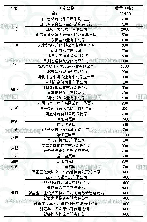 錦橋紡織網(wǎng)—資訊頻道> 棉花信息> 棉花評(píng)述>正文 10月25日收儲(chǔ)庫點(diǎn)及數(shù)量