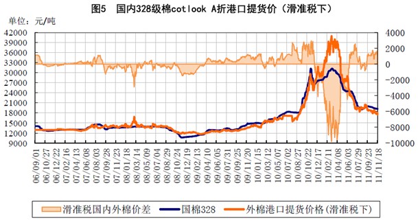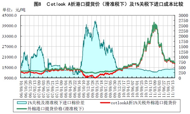 (五)農(nóng)產(chǎn)品價格普遍回落,全球宏觀貨幣政策整體趨松。 國內(nèi)農(nóng)產(chǎn)品價格出現(xiàn)明顯回落,豬肉、雞蛋、蔬菜、水果價格均出現(xiàn)大幅下落,10月份CPI“破6歸5”。國內(nèi)宏觀政策將調(diào)控重心由之前的“穩(wěn)物價”轉(zhuǎn)為“穩(wěn)增長”。 另外,進入10月份以來,全球貨幣寬松已形成趨勢,對主要經(jīng)濟體而言主要表現(xiàn)為:美國實行扭轉(zhuǎn)操作(OT)實質(zhì)為“定質(zhì)寬松”,且不排除繼續(xù)推出QE3(量化寬松3)的可能,歐洲央行降低利率及英國央行10月初宣布的量化寬松政策也宣告了歐洲的貨幣政策方向,而巴西、印尼、澳洲的降息政策及印度央行宣布加息周期告一段落也表明了新興經(jīng)濟體貨幣轉(zhuǎn)向?qū)捤伞?/p> 以上兩點,以及10月份中國PMI指數(shù)的回落,均為國家宏觀調(diào)控重心轉(zhuǎn)向“穩(wěn)增長”提供了充分及必要條件,應(yīng)對政策的一系列調(diào)整有所警覺。 二、關(guān)注點:進口棉配額政策的回顧與展望 國家大量收儲對國產(chǎn)棉價格形成支撐,而外棉價格在消費疲弱的情況下呈現(xiàn)震蕩向下走勢。在收儲數(shù)量達到一定規(guī)模時,國內(nèi)棉花供需關(guān)系將有所改善。可能導致涉棉企業(yè)增加外棉進口力度以獲得一定價差收益。為保證國內(nèi)棉市不受到低價進口棉市場的沖擊,保證收儲對國內(nèi)棉價的支撐有效性,不排除國家調(diào)整下年度進口棉配額政策的可能。 目前有兩種調(diào)整可能,一是減少或控制滑準稅配額的發(fā)放節(jié)奏,二是上調(diào)滑準稅起征價格。目前進口滑準稅起征價格在11397元/噸,折進口棉CNF報價在81.16美分/磅(即外棉報價在81.16以下時,征收5-40%的滑準稅,高于這個價格僅從量征收每噸570元的進口關(guān)稅)。若上調(diào)滑準稅起征價格,將擴大滑準稅征收范圍,增加進口棉成本,以達到“筑壩攔水”的效果。