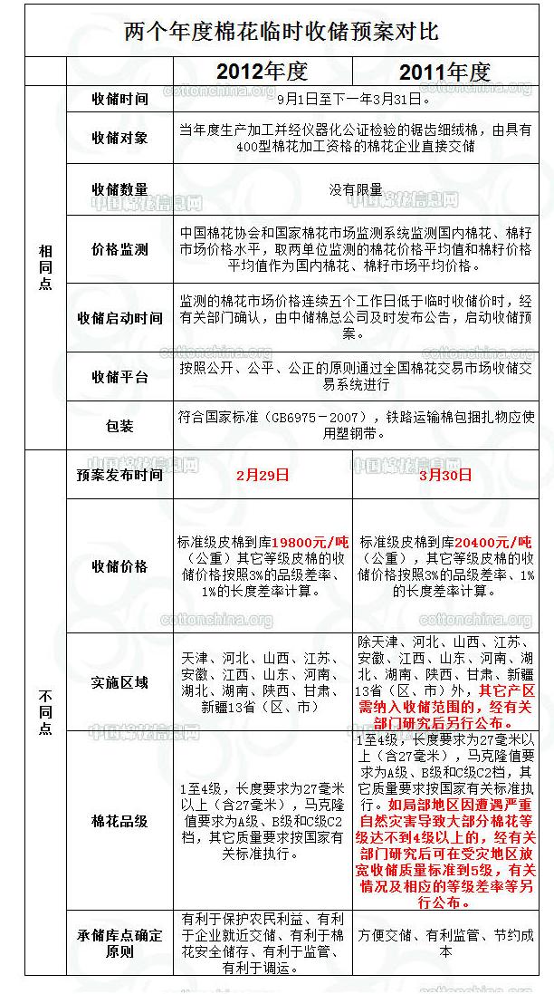 [聚焦新收儲(chǔ)]2012年度與2011年度棉花臨時(shí)收儲(chǔ)預(yù)案比較