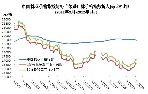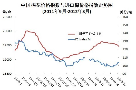 3月國內紡織企業(yè)生產(chǎn)經(jīng)營狀況仍沒有起色,原料采購隨用隨買,國內棉花成交清淡,同時國內外期貨市場走勢較弱,帶動現(xiàn)貨價格逐步走低。月底,2011年度收儲結束,加工企業(yè)交儲積極,累計成交超過300萬噸。