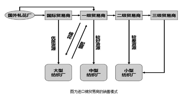 貿(mào)易商分類銷售模式不同,企業(yè)獲利有差異 按照規(guī)模及貿(mào)易范圍,可以將青島乃至全國的進(jìn)口棉貿(mào)易商大致分為三類。一是國際貿(mào)易商,如路易達(dá)孚、新加坡奧蘭、賴因哈特、美國嘉吉、伊卡姆、萊寶等。二是國內(nèi)一級貿(mào)易商,如方正物產(chǎn)、河南同舟、北京恒天、中棉集團(tuán)、中投集團(tuán)以及其他大的棉商等。三是國內(nèi)二級貿(mào)易商,如華鵬、帝世等。另外,市場上還存在三級貿(mào)易商,其以從二級貿(mào)易商手中倒賣進(jìn)口棉為主。 “按照貿(mào)易商的分類,可以將其采購模式分為三類。”由于采購模式不同,貿(mào)易商面臨的市場風(fēng)險也不同,其規(guī)避市場風(fēng)險的意識存在較大差異,這導(dǎo)致他們對待棉花期貨的態(tài)度也大相徑庭。通常情況下,國際貿(mào)易商直接從美國、印度、澳大利亞等棉花產(chǎn)地采購,買入之后基本上都采取期貨套保的方式來降低貿(mào)易風(fēng)險,并且其在訂貨前已將多數(shù)產(chǎn)品簽出了預(yù)售合同。國內(nèi)一級貿(mào)易商會從國外棉商或加工商手中直接采購,而更多的是選擇從國際棉商手中采購。一級貿(mào)易商大部分都具有參與期貨市場的意識,但僅有少部分企業(yè)掌握了操作技能,并參與了期貨交易。國內(nèi)二級、三級貿(mào)易商主要從國內(nèi)一級貿(mào)易商手中采購棉花,也有一些二級、三級貿(mào)易商不采購、不囤貨棉花,只進(jìn)行轉(zhuǎn)賣,其期貨參與意識較低。 據(jù)記者調(diào)研了解,進(jìn)口棉貿(mào)易商的銷售模式又可以根據(jù)其采購模式的不同分為三類。對于國際棉花貿(mào)易商而言,其采購的棉花基本被國內(nèi)大型棉花貿(mào)易商和大型棉紡織企業(yè)瓜分,其獲利能力強(qiáng),利潤空間大。國內(nèi)一級棉花貿(mào)易商從國際貿(mào)易商手中接到棉花后,首先在自己內(nèi)部的圈子里,比如業(yè)務(wù)關(guān)系好的紡織企業(yè)和貿(mào)易企業(yè),消化優(yōu)質(zhì)資源,再將剩余的棉花資源銷售給二級、三級貿(mào)易商,其獲利能力比較穩(wěn)定。國內(nèi)二級、三級棉花貿(mào)易商處于被動地位,其中少部分規(guī)模稍大點的企業(yè)會采購一部分棉花,自己做貿(mào)易,多數(shù)小企業(yè)則是進(jìn)行報價倒賣交易,銷售對象往往是規(guī)模較小的紡織企業(yè),其獲取的利潤微薄。