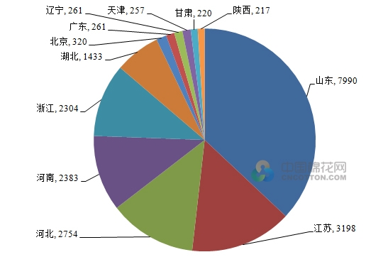 從成交企業(yè)分布來看,山東共計(jì)成交7990噸,占總成交量的37%,位居第一;江蘇成交3198噸,占總成交量的14.8%,山東和江蘇兩省的成交量占總成交量的51.8%。河北、河南、浙江成交均在2000噸以上,分別占總成交量的12.8%、11.0%和10.7%;湖北成交量為1433噸,占比6.64%;北京、廣東、遼寧、天津、甘肅和陜西成交量均在350噸以下,合計(jì)占比不足8%。
