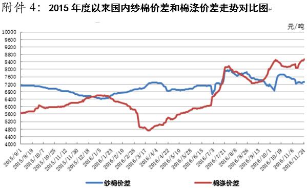 國內(nèi)棉價短期內(nèi)以振蕩為主。宏觀方面,據(jù)國家統(tǒng)計局最新數(shù)據(jù)顯示,1-10月份,全國規(guī)模以上工業(yè)企業(yè)實現(xiàn)利潤總額52567.7億元,同比增長8.6%,增速比1-9月份加快0.2個百分點。據(jù)中國海關總署統(tǒng)計,2016年10月,我國進口棉花4.13萬噸,同比下降1.84%;10月份進口棉紗14.07萬噸,同比下降19.25%。本周央行加大資金投放力度,實現(xiàn)凈投放資金400億元,人民幣匯率持續(xù)創(chuàng)新低。