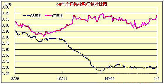 08年11月28日-09年1月6日國(guó)內(nèi)棉花現(xiàn)貨行情