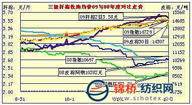 12月2日計劃拋售2006、2007年度儲備棉18063噸,全部成交;平均等級3.76,較昨上一日高0.03,平均長度29.05,較上一日高0.08;加權(quán)成交價14699元/噸,較上一日跌20元,折328級成交價為14880元/噸,較上一日跌44元。其中主體品級429級成交均價14683元,跌13元,最高價15300元,最低14000元。截止12月2日,累計成功拋售儲備棉2301187噸,其中2008年度儲備棉1507029噸,2003-2007年度棉花794158噸 ;當日有279家交易商參與競賣,有47家企業(yè)最終成交,當日推出資源總捆數(shù)98捆,實際成交98捆。