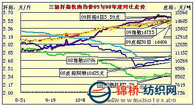 12月4日計劃拋售2006、2007年度儲備棉17021噸,抽放量較前減少近三千噸,全部成交;平均等級3.87,較昨上一日降低0.08,平均長度29.00,較上一日提高0.06;加權(quán)成交價14853元/噸,較上一日漲90元,折328級成交價為15091元/噸,較上一日漲115元。其中主體429級均價14837元,漲92元,最高價15280元,最低14620元。魏橋當天成交1759噸,占成交總量的10.3%,成交均價14796元,漲65元;淄愽蘭雁成交1354噸,均價14884元,最高價14900元,最低價14860元;魯棉集團天元公司成交1199噸,均價15051元,漲175元,最高價15290元,最低14900元;保定銀祥棉業(yè)成交965噸,均價14768元,最高價14820元,最低14740元。截止12月4日,第三批50萬噸拋儲計劃累計成功拋售儲備棉201782噸。當日有245家交易商參與競賣,有43家企業(yè)最終成交,當日推出資源總捆數(shù)94捆,實際成交94捆。