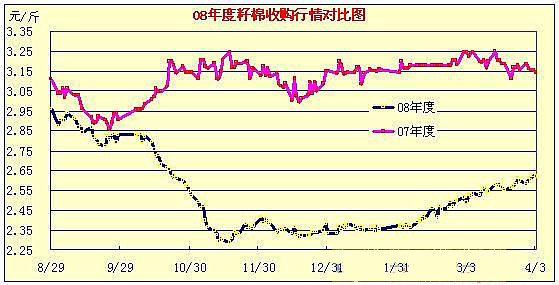09年2月27日-09年4月3日國(guó)內(nèi)棉花現(xiàn)貨行情